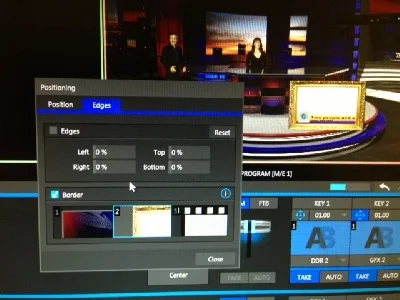For all TriCasters you can now add borders and shadows to DSKs in both the switcher and M/Es. Hundreds of pre-made borders are included with the software or you can create your own. Drop shadows and outlines can be added to each DSK. And you can add transparency (opacity) to each DSK. This means you can finally add outlines, borders or shadows to lower-third titles and other graphics or even video clips and live camera feeds. Just remember to also download and install the separate content when you install the Advanced Edition software.